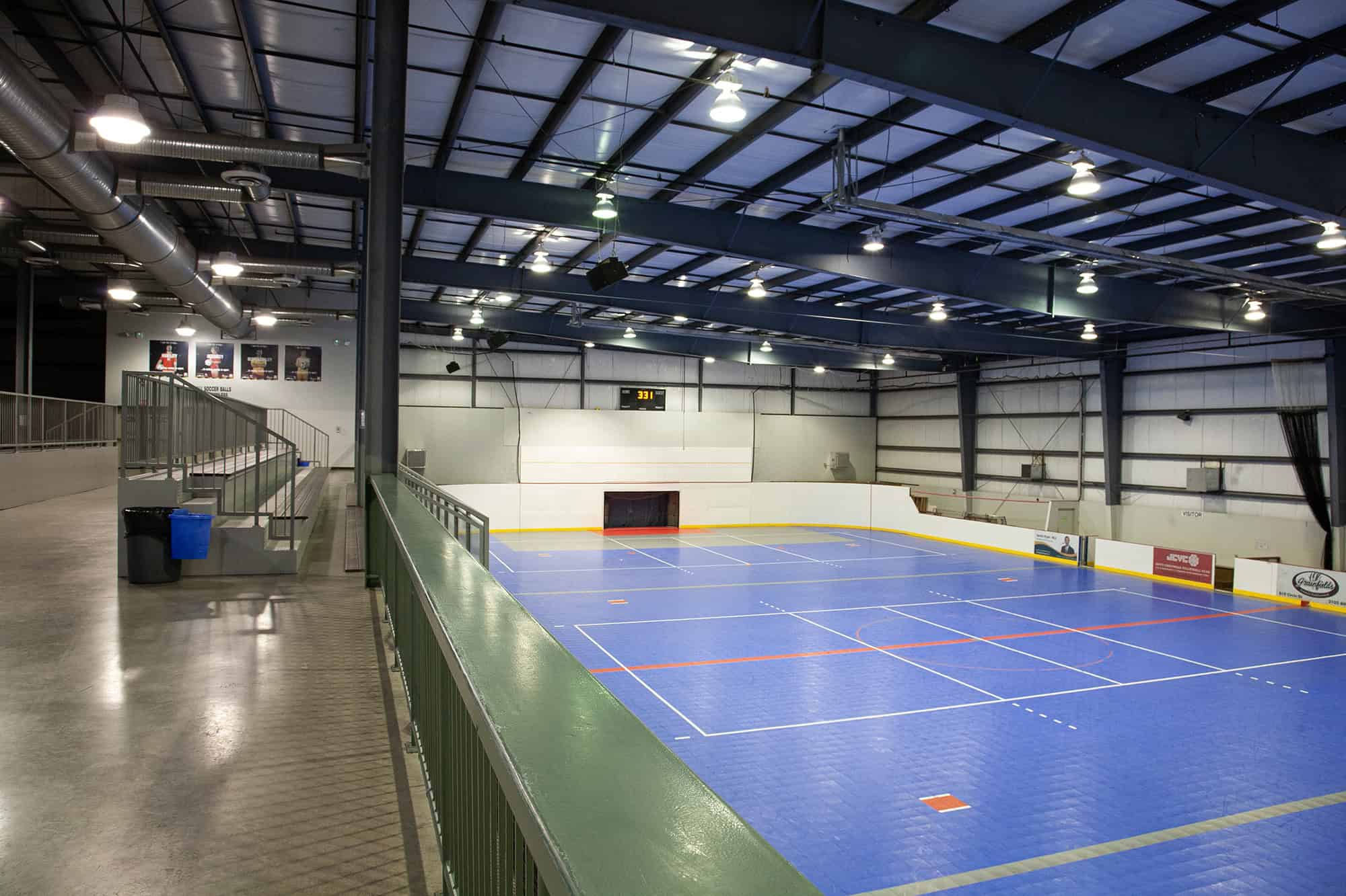 - 4 indoor soccer fields (27yd x 60yd, 80ft x 180ft)
